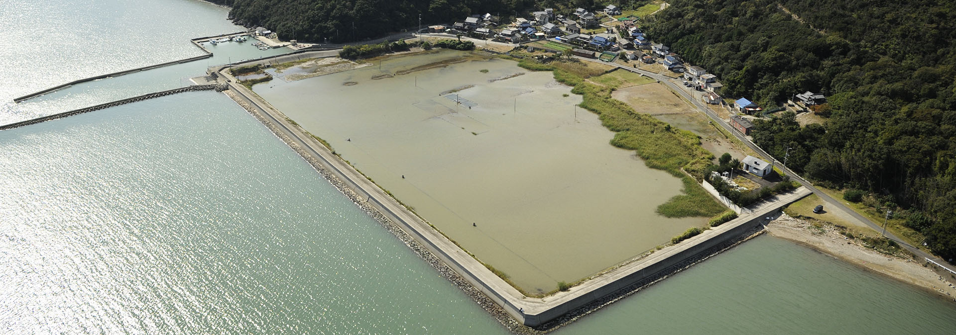 江戸時代に大規模な干拓が行われるまでは海が深く入り込んだ入江地形を呈し、特に福浦は「九艘泊」、「大泊」、「船隠」といった地名からも船の停泊する津としての役割をもっていたと考えられる。江戸時代になると干拓によって塩田や水田が整備され、現在のような平地が続く地形となった。